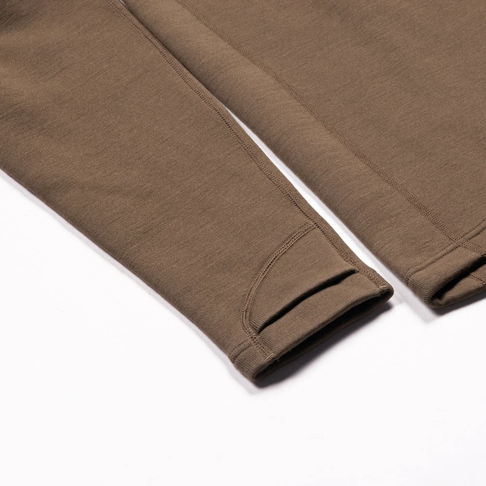 A sharp looking and high performing piece, this well-rounded Merino Hoodie wears comfortably from temperature ranges 30 degrees to 70 degrees. It features a soft brushed fleece next-to-skin layer, thumb holes for easy layering and warmth, flat locked seams and a heavy weight construction for ultimate comfort as a mid or outer layer. The Merino Wool advantage is real: this garment regulates your body temperature and doesnโt run too hot as temperatures rise later in the day. Grab one for your next hunting or fishing trip and it will soon be a mainstay in your gear closet.