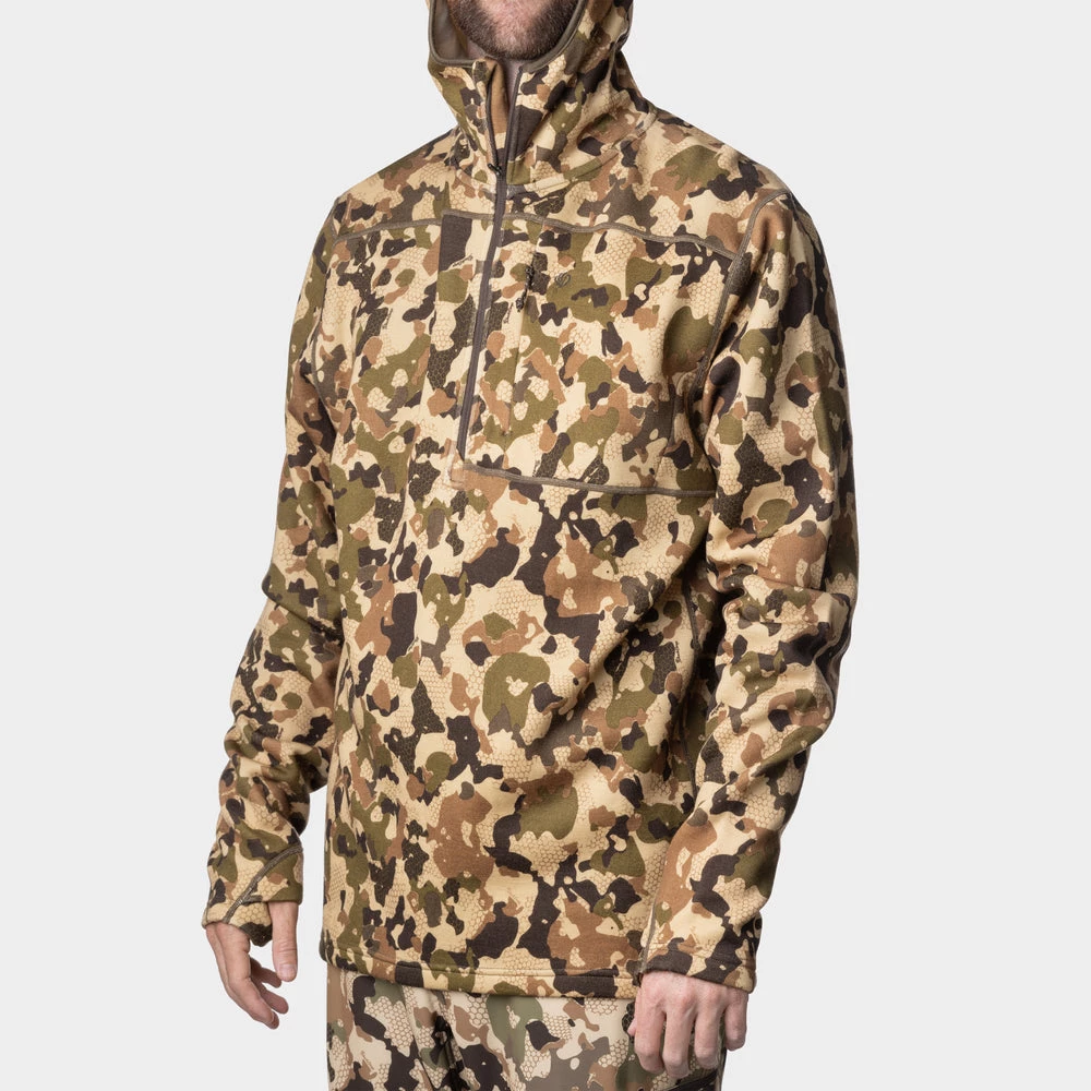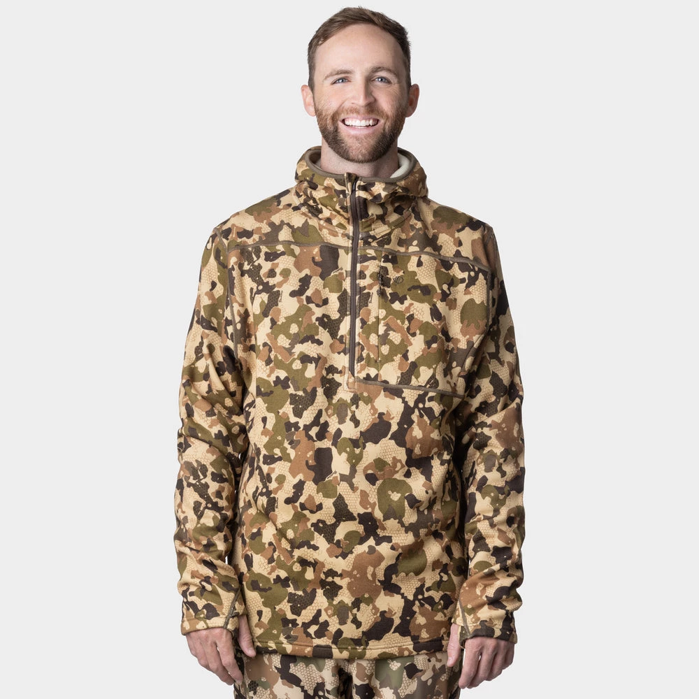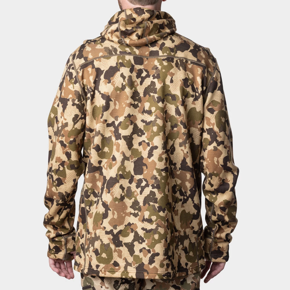 A sharp looking and high performing piece, this well-rounded Merino Hoodie wears comfortably from temperature ranges 30 degrees to 70 degrees. It features a soft brushed fleece next-to-skin layer, thumb holes for easy layering and warmth, flat locked seams and a heavy weight construction for ultimate comfort as a mid or outer layer. The Merino Wool advantage is real: this garment regulates your body temperature and doesnโt run too hot as temperatures rise later in the day.