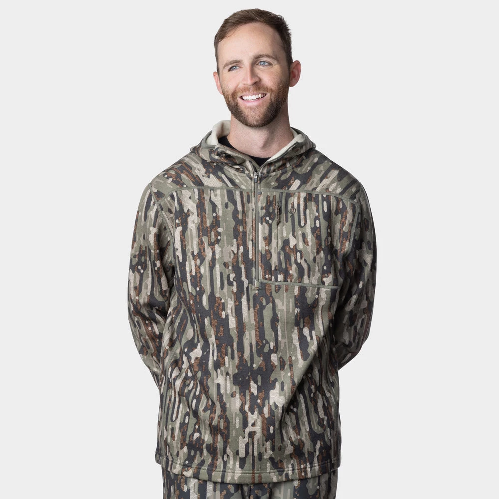 A sharp looking and high performing piece, this well-rounded Merino Hoodie wears comfortably from temperature ranges 30 degrees to 70 degrees. It features a soft brushed fleece next-to-skin layer, thumb holes for easy layering and warmth, flat locked seams and a heavy weight construction for ultimate comfort as a mid or outer layer. The Merino Wool advantage is real: this garment regulates your body temperature and doesn’t run too hot as temperatures rise later in the day.