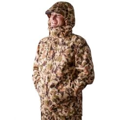 Our most technical water-poof jacket to date, we built each piece from scratch to keep you comfortable and confident on the open water or trudging through wetlands. Our brushed fabric membrane provides a soft, relaxed feel, offering a welcome departure from your usual rigid shells. Ideal for anglers and hunters alike, it also includes unique design features like a low-profile killswitch attachment and fully adjustable hood, hem and cuffs for customized comfort.