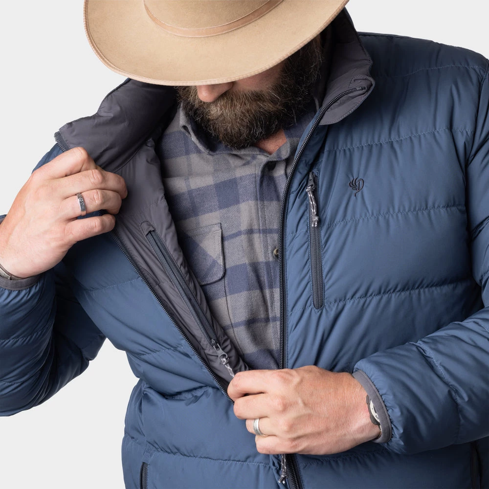Insulated with 700 fill duck down, which simply means that it has one of the highest warmth-to-weight ratios out there for down filling. Treated inside and out on a microscopic level with a durable water repellent finish to maintain insulating power in wet conditions.