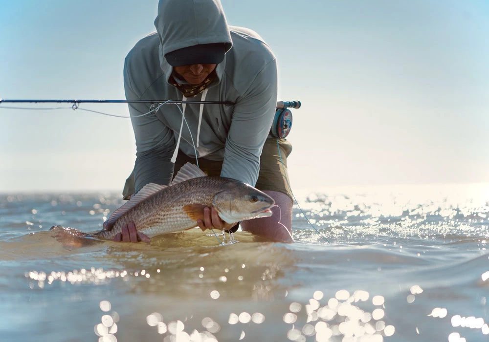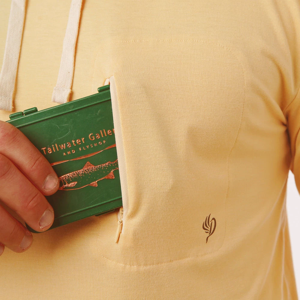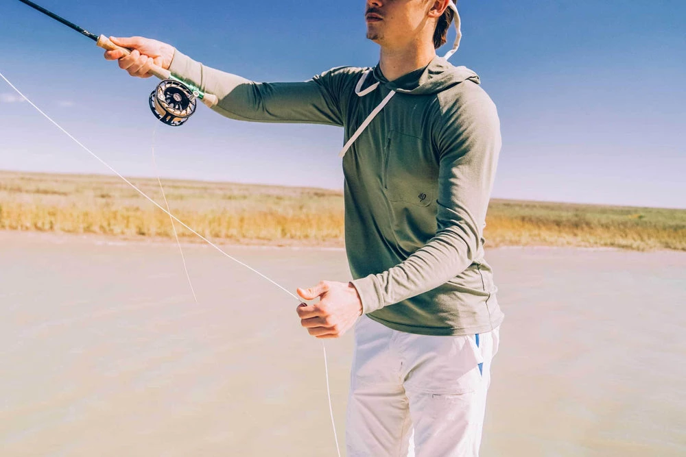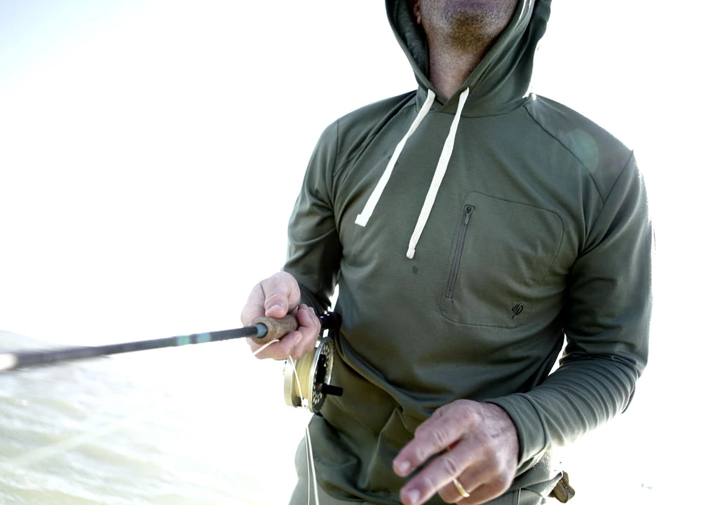 This lightweight bamboo hoodie is carefully crafted for long days in the sun. Made with a super soft bamboo fabric blend, this ultimate fishing hoodie is UPF20+. That means you can wear it for days on your next fishing trip without it stinking. This is the best lightweight hoodie for your casting adventures. Also available in River Rock Green and Pluff Mud Gray colors.