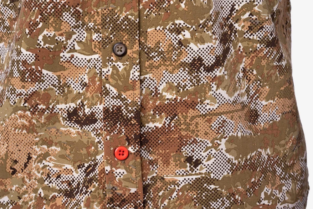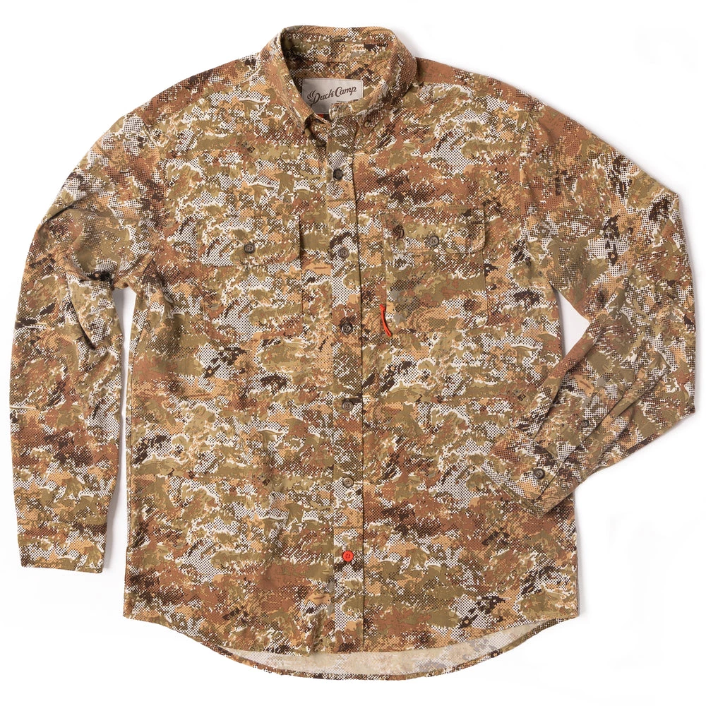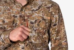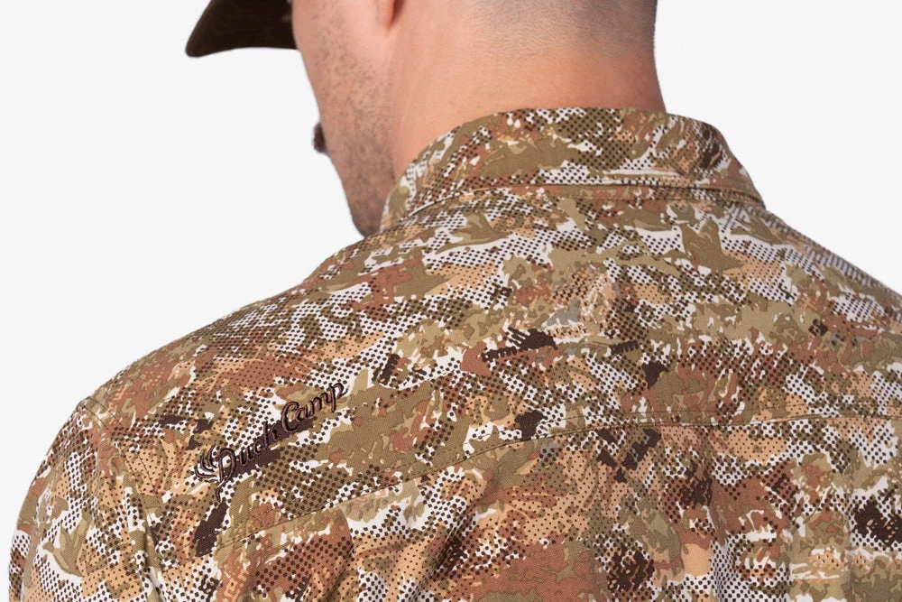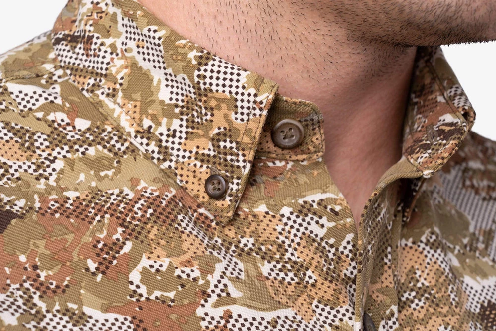 Game animals in the brush country: beware. Our Midland 2.0 camouflage is best suited for hunting in cut sunflower fields, corn fields and any environment with lots of brush. Itโs also ideal for chasing pronghorn, elk and other big game animals out West. The Midweight fabric of this shirt is a Nylon material, so it breathes much better than polyester, yet is substantial enough for temperatures ranging from 45 – 70 degrees. This all-around versatile hunting shirt will be a new staple in your closet. Check your feeders, scout your birds or start glassing – and be sure to throw on your Midland 2.0 camo shirt for a successful day in the field.