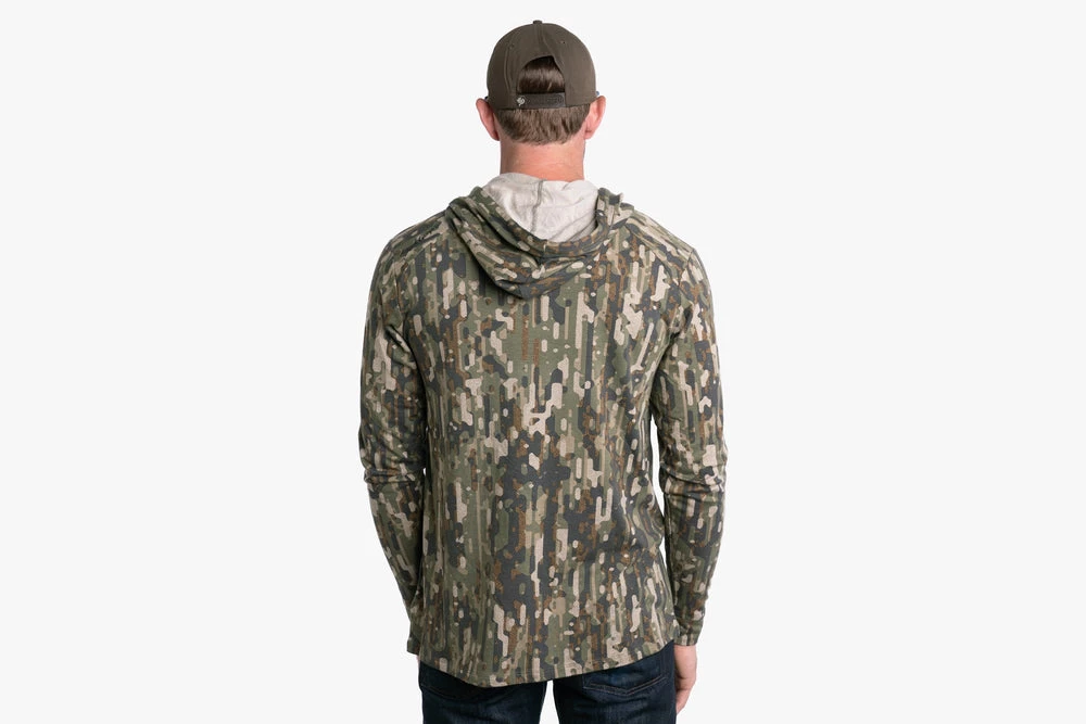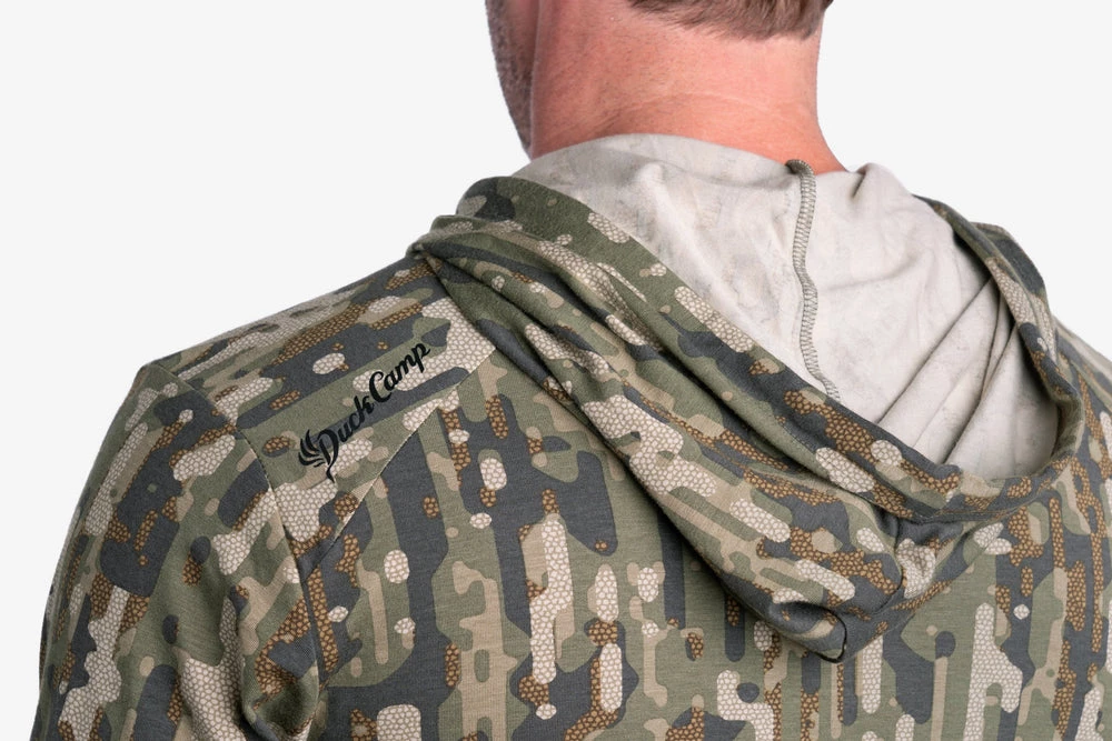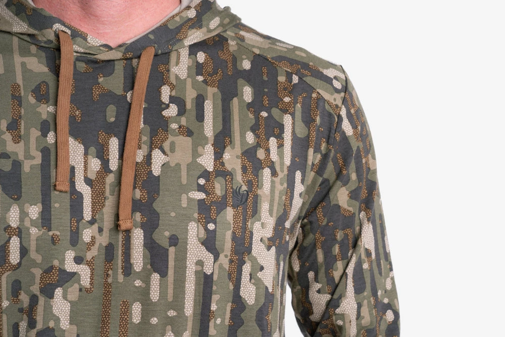 For all you hunters who are looking for ultimate concealment in the tree canopy, look no further. The Woodland camo Bamboo Hoodie is the solution because it’s quiet, soft, and ultra-concealing. Wear this hoodie in the deer woods, against a tree for spring turkey season, or in the flooded timber hunting ducks. On top of that, this piece doubles as a great fishing or hiking shirt. Grab a matching Woodland bamboo neck gaiter while you’re at it!